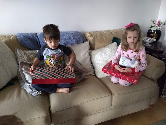 4. Christmas. The kids didn't wake up super early (probably mostly because they were still on Central time) but were eager to open gifts once they did get up. Two of Luke's sisters were staying with his parent's as well, and after some cinnamon rolls, we dug into presents. Soon after we started, his youngest sister and her fiance joined in the happy chaos. There was lots of laughter and excitement from the kids. Between Christmas Eve and Christmas morning, Noelle is now well stocked in craft supplies and cute clothes, and Jonah has multiplied his Mario brothers clothing collection.